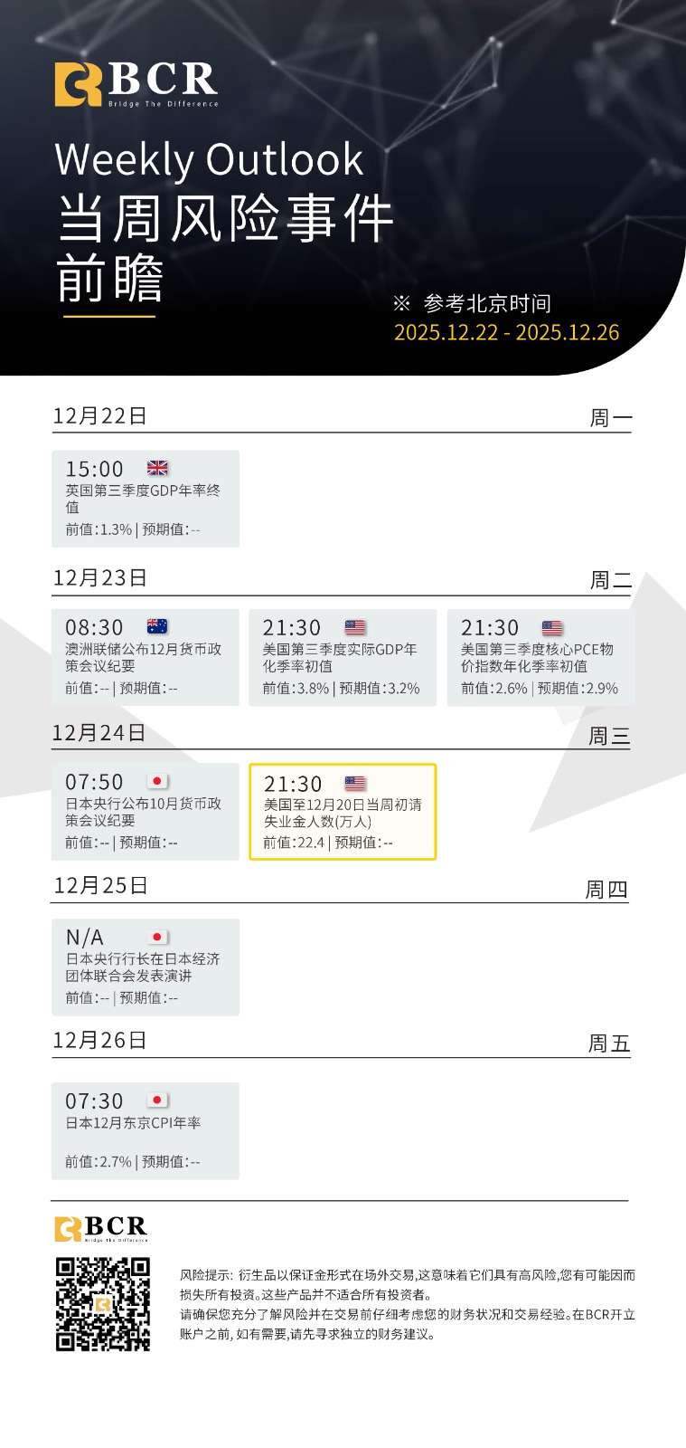 风险披露:衍生品在场外交易,采用保证金交易,意味着具有高风险水平,有可能会损失所有投资。这些产品并不适合所有投资者。在进行交易之前,请确保您充分了解风险,并仔细考虑您的财务状况和交易经验。如有必要,请在与BCR开设账户之前咨询独立的财务顾问。