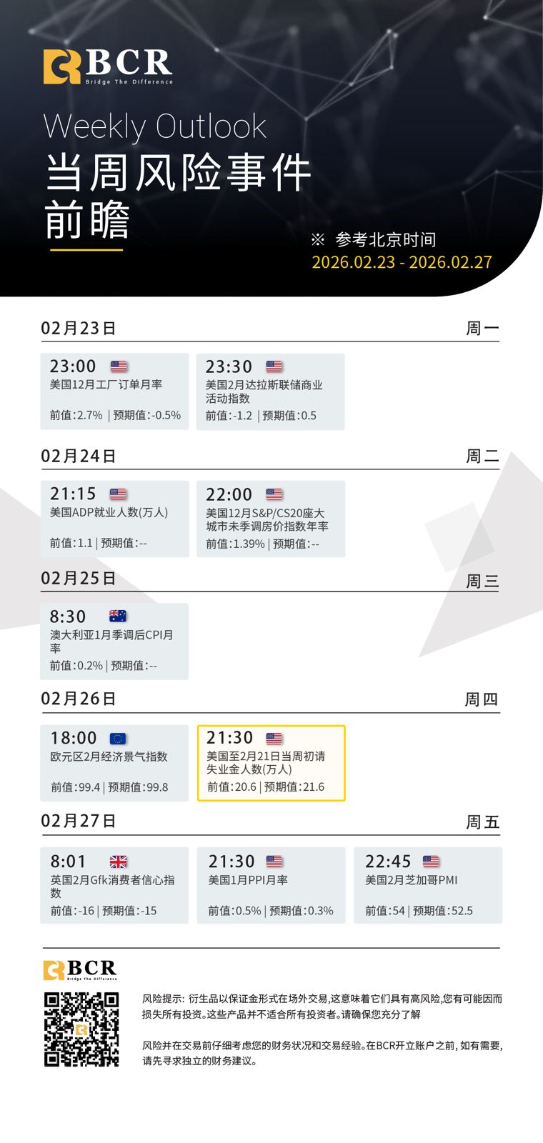 每周风险事件前瞻 : 2 月 23 日—2 月 27 日