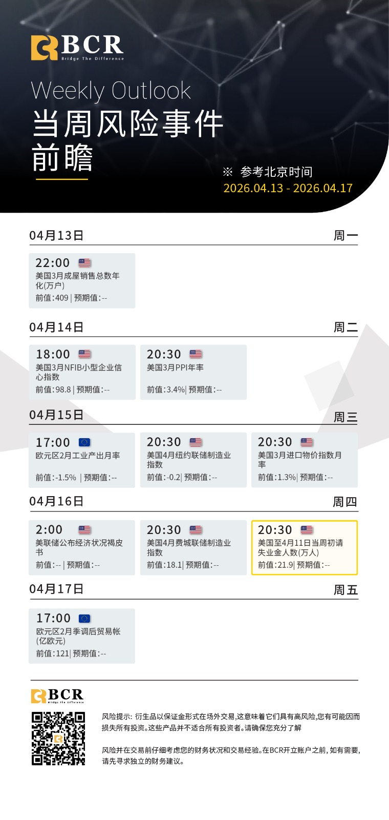 风险披露:衍生品在场外交易,采用保证金交易,意味着具有高风险水平,有可能会损失所有投资。这些产品并不适合所有投资者。在进行交易之前,请确保您充分了解风险,并仔细考虑您的财务状况和交易经验。如有必要,请在与BCR开设账户之前咨询独立的财务顾问。