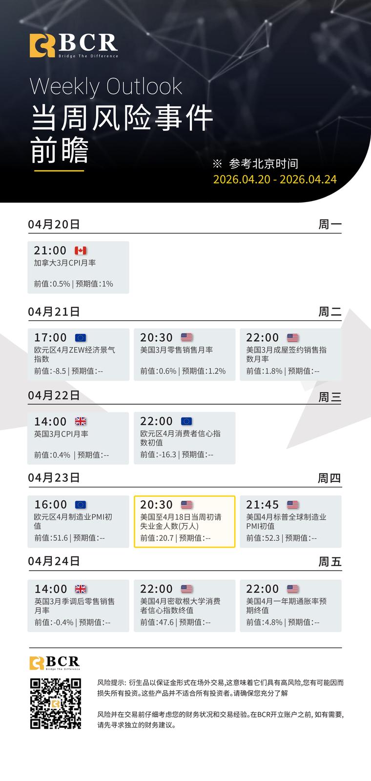 风险披露:衍生品在场外交易,采用保证金交易,意味着具有高风险水平,有可能会损失所有投资。这些产品并不适合所有投资者。在进行交易之前,请确保您充分了解风险,并仔细考虑您的财务状况和交易经验。如有必要,请在与BCR开设账户之前咨询独立的财务顾问。