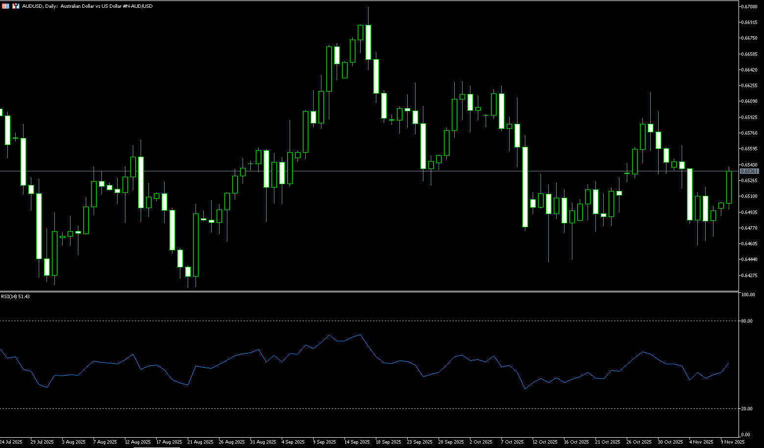 The Australian dollar traded above 0.6530 against the US dollar on Monday. The 14-day Relative Strength Index (RSI) has rebounded to around 51, suggesting further upside potential. Technical analysis on the daily chart shows the pair consolidating within a sideways channel pattern, with highs and lows at 0.6615 and 0.6440 respectively, and a midline at 0.6530. It is slightly above the 5-day simple moving average at 0.6495, indicating strong short-term momentum. Initial resistance is at the 55-day simple moving average at 0.6556. A break above this level would improve medium-term price momentum and support the pair exploring the area around 0.6597 (October 30 high) and 0.6600 (a psychological level). On the downside, AUD/USD may find immediate support at the psychological level of 0.6500, followed by the 200-day simple moving average at 0.6450 and the five-month low of 0.6414 reached on August 21. Further support lies at the six-month low of 0.6372.