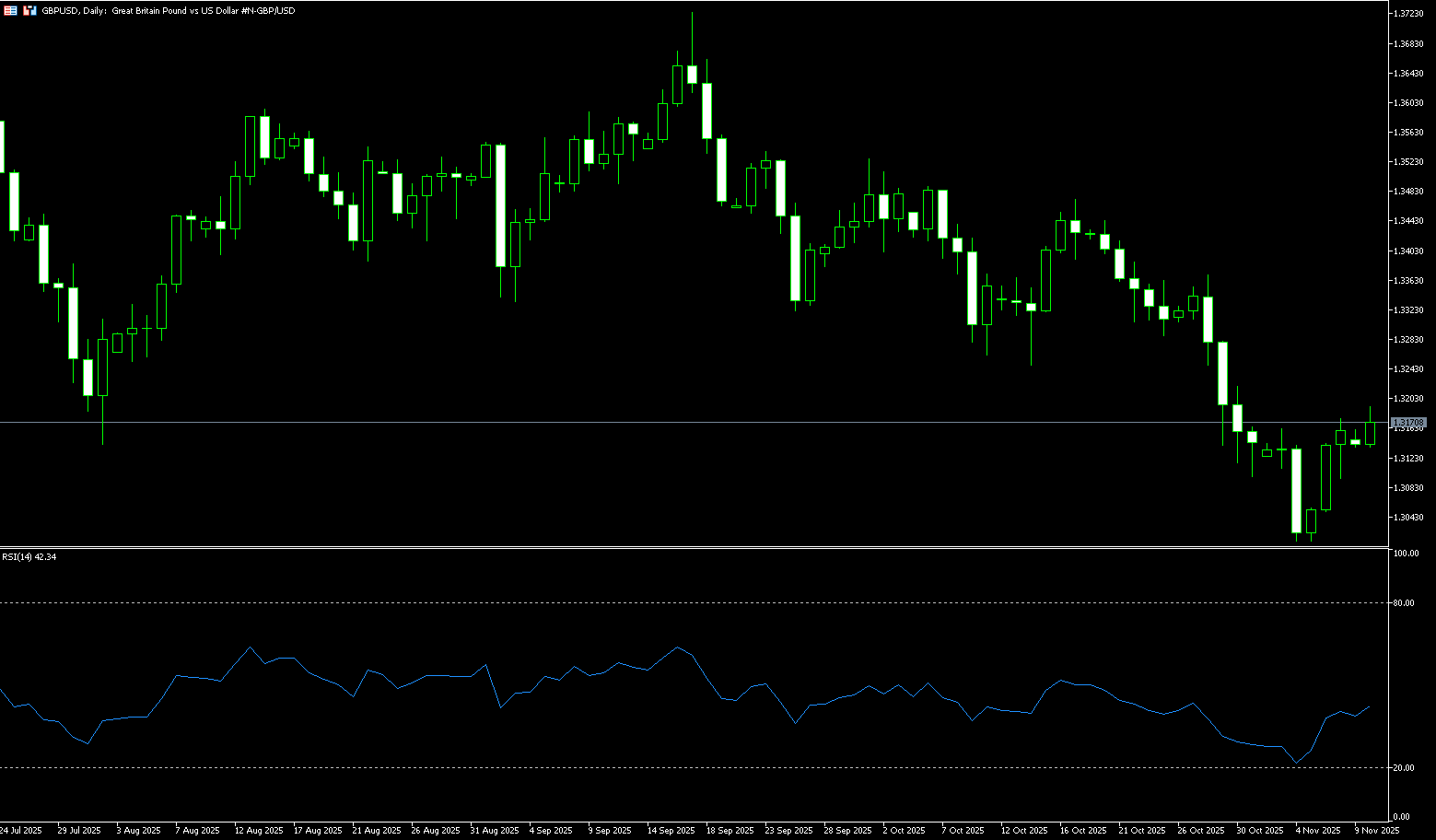 Looking at recent price action, the GBP/USD technical chart shows a slight recovery, but after breaking below the 200-day simple moving average at 1.3268 before the end of October, the pair repeatedly declined along the downtrend, briefly reaching a low of 1.3010. Fortunately, strong buying support at the psychological level of 1.3000 allowed it to rebound above 1.1380. The 14-day RSI indicator shows bullish momentum, but buyers must break through the 1.3200 level (the psychological barrier) and reclaim the 200-day simple moving average at 1.3268 to regain control of the 1.3300 level. Conversely, further weakness would lead to a test of the 1.3105 level (the 5-day simple moving average). And the 1.3100 (psychological level) area. The next level will pave the way for a test of last week's low of 1.3010, followed by the psychological level of 1.3000.