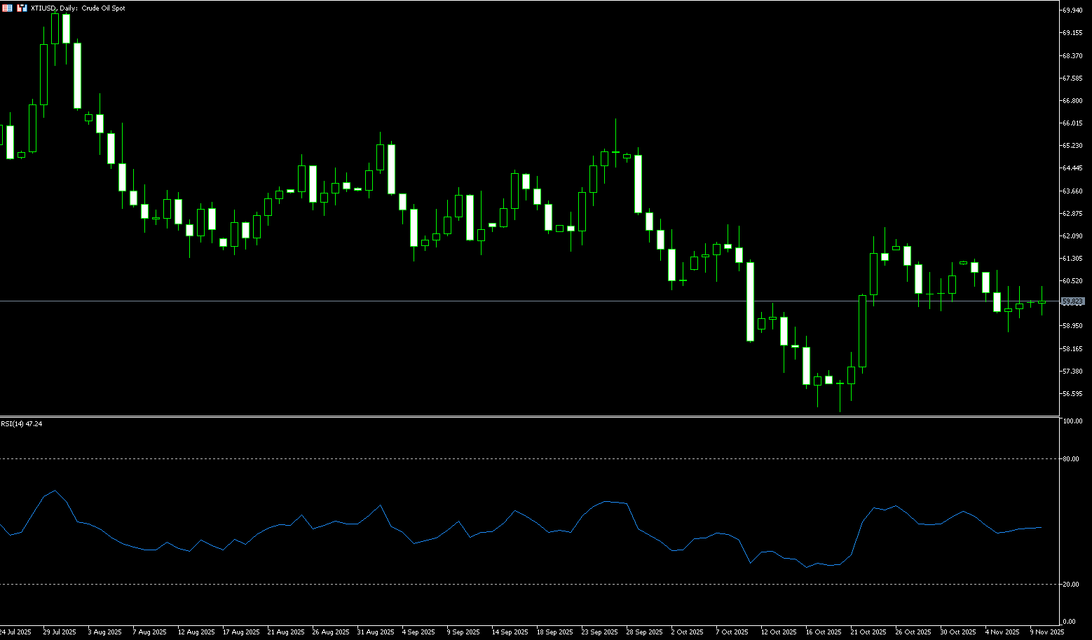 From a supply and demand perspective, the current oil market has entered a typical phase of ample supply, weakening demand, and rising macroeconomic uncertainty. The combined effects of surging inventories, production increase plans, and a stronger dollar make a short-term trend reversal in oil prices unlikely. Only when inventories decline or demand shows a clear improvement can oil prices break free from the downward trend. Technically, the daily chart for US crude oil remains within a downtrend line, and the moving averages maintain a bearish trend. However, the MACD indicator shows a potential rebound after continuous adjustments, making a significant short-term decline unlikely. The daily moving average resistance at 61.30 (last week's high) serves as a short-term dividing line between bullish and bearish sentiment. If the rebound breaks through this level, it could strengthen further to $62.38 (the high of October 24th). Conversely, it will likely remain range-bound, with support levels at $59.00-$0.48 (the 20-day simple moving average) and the psychological level of $59.00. A break below these levels would open up downside potential to the $58 psychological level. In the short term, continued attention should be paid to inventory data changes, awaiting a directional move.