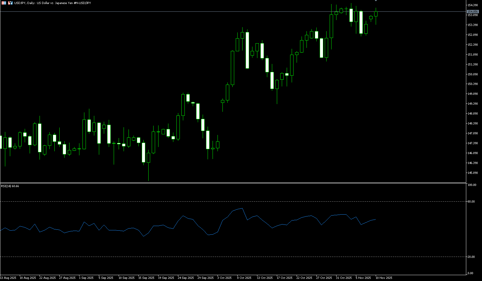 USD/JPY traded near 154.00 in early Asian trading on Monday, in positive territory. The yen retreated from a more than one-week high due to uncertainty surrounding the timing of the Bank of Japan's next interest rate hike. Japan's new Prime Minister Sanae Takaichi is seeking to finalize a roughly $65 billion economic stimulus package by the end of November to combat inflation and growth, and to fund it through a supplementary budget. Furthermore, the Bank of Japan remains reluctant to commit to further rate hikes. Nevertheless, the minutes of the Bank of Japan's September meeting showed that a growing number of policymakers believed the conditions for a rate hike were gradually maturing, with two members calling for an immediate increase. Board members noted that the Bank of Japan might be able to resume its stance on rate hikes once the 2% price stability target is more or less achieved. US consumer confidence is near a three-and-a-half-year low due to anxieties stemming from the government shutdown, which could put some selling pressure on USD/JPY.
