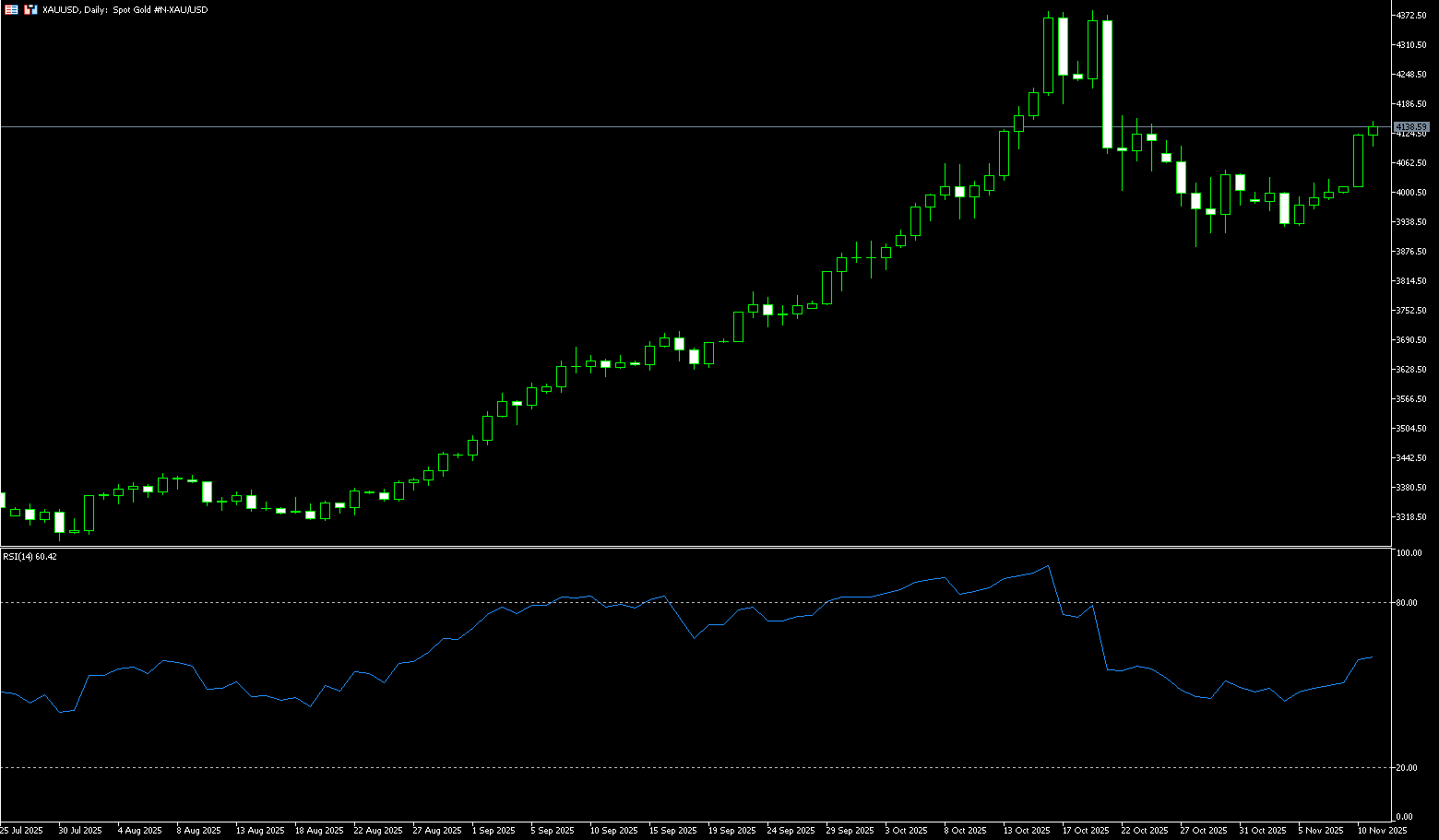 US crude oil is trading above $60 per barrel. Oil prices rose moderately at the beginning of the week, with the market exhibiting a supply-demand dynamic. Tight supply of refined products pushed prices up, while concerns about a crude oil oversupply limited gains. Geopolitical uncertainty and expectations of the US government reopening also supported bullish oil prices. The US Senate passed the first phase of the agreement to end the 40-day government shutdown, injecting some risk appetite into markets including oil. Traders are betting that the agreement could restore government spending, boosting demand in the world's largest oil consumer. However, market optimism regarding demand remains cautious. More than 2,800 flights were canceled in the US on Sunday, marking the worst disruption to air travel since the government shutdown began, raising concerns about short-term jet fuel consumption. That said, if the shutdown agreement is ultimately implemented, some of the lost demand could recover quickly in the coming weeks.
