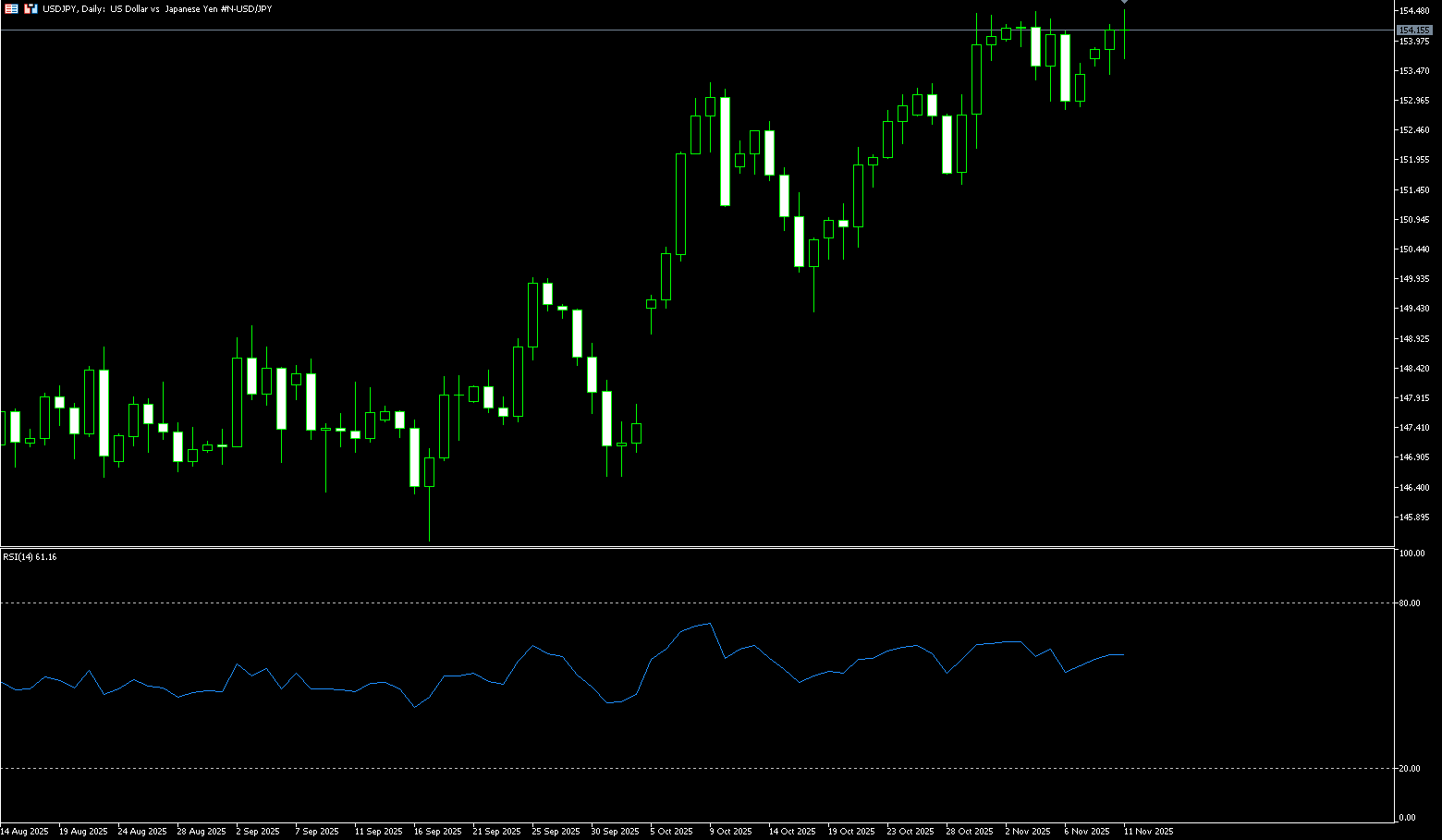 The Bank of Japan moved further away from its new multi-month low against the US dollar during Tuesday's Asian session, although any meaningful appreciation seemed unlikely. Yen bears became cautious as markets anticipated potential intervention by Japanese authorities to curb further depreciation of the currency. This, combined with a weak dollar, limited the pair's movement near the 154.45-154.50 resistance zone. However, uncertainty surrounding the timing of the Bank of Japan's next rate hike could pose resistance for the yen. In fact, the Bank of Japan's opinion summary released on Monday showed disagreement on interest rate hikes. Coupled with BOJ Chancellor Junko Nakagawa's statement that the central bank would take a cautious approach to policy decisions, this further reinforced market expectations that the BOJ might postpone rate hikes, as the market bets on a massive stimulus package under the new Prime Minister Sanae Takaichi's government, which could continue to weaken the yen. Furthermore, the possibility of the US government shutdown ending could further suppress any meaningful appreciation of the safe-haven yen.