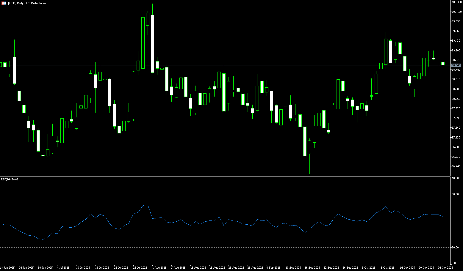 Đồng đô la Mỹ giảm nhẹ vào đầu tuần. Trọng tâm chính tuần này là sự gia tăng khẩu vị rủi ro do chính quyền Trump tạm dừng đàm phán thương mại, và dữ liệu CPI Mỹ yếu, củng cố kỳ vọng cắt giảm lãi suất. Những yếu tố này, kết hợp với căng thẳng địa chính trị, đang thúc đẩy biến động thị trường tăng cao. Hội nghị thượng đỉnh tuần này sẽ là biến số chính. Hiện tại, thị trường ngoại hối đang cho thấy mô hình phân kỳ giữa nhiều bất ổn. Đồng đô la Mỹ gần như không đổi vào thứ Sáu tuần trước sau khi dữ liệu lạm phát mới cho thấy giá tiêu dùng Mỹ tháng Chín tăng yếu hơn dự kiến, duy trì khả năng Fed cắt giảm lãi suất thêm trong tuần này. Nhìn về tuần này, nếu hội nghị thượng đỉnh báo hiệu nới lỏng, có thể giảm khẩu vị rủi ro và thúc đẩy phục hồi các đồng tiền không phải Mỹ. Ngược lại, lo ngại thuế quan mới có thể kiểm tra hỗ trợ của đồng đô la Mỹ tại 99. Hoạt động ngân hàng trung ương dày đặc, với các cuộc họp của Cục Dự trữ Liên bang, Ngân hàng Nhật Bản và Ngân hàng Trung ương châu Âu định hình quỹ đạo. Các công bố dữ liệu và bài phát biểu chính thức rất quan trọng. Trong ngắn hạn, phe mua đồng đô la Mỹ được ưu tiên, nhưng rủi ro biến động vẫn còn.